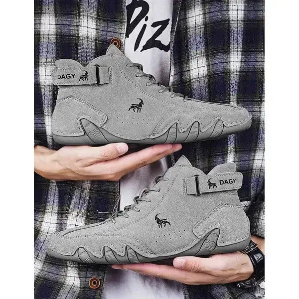 Step up your style with our Mens High-Top Sneakers. These breathable solid color flat casual shoes come in multiple colors including Black, Blue, Grey, Khaki, and more, featuring a temperature-regulating lining for all-season comfort. Perfect for casual wear, they combine durability with a sleek, high-top design accented by "DAGY" branding.